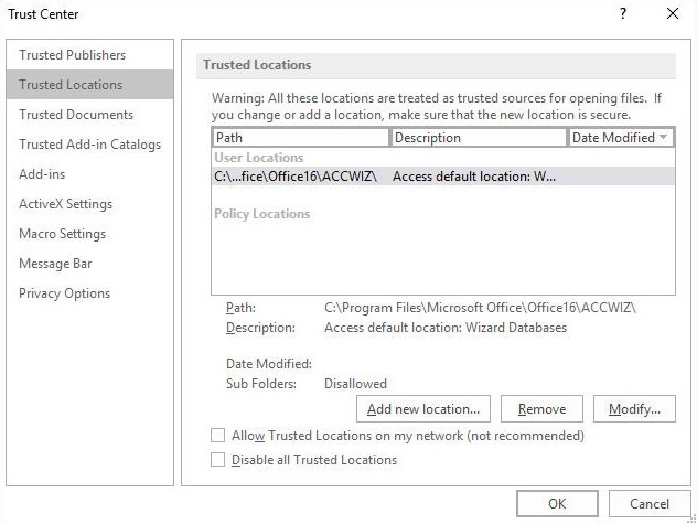 The cause of this error happens when the Access Database does not rely on the launched databases as it creates trust issues to the MS Access. It basically occurs when macro calling a VBA runs and as soon as access executes the VBA file, access turns itself into disable mode and does not give permissions for the further running of the executable file.